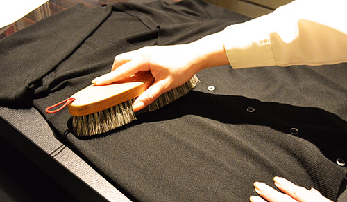 洋服ぶらしは服についた汚れを払うだけでなく、着ているあいだに乱れた繊維の流れを整えて光沢を出します。