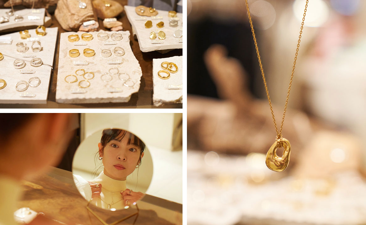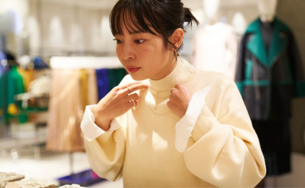 秋元舞子さんと向かったのは、自身が手がけるファッションブランド<PHEENY/フィーニー>を展開する本館2階のリ・スタイルTOKYO。そこで手にしたのは<TEN./テン>のアクセサリーです。