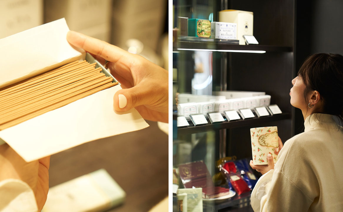 フロアを移動して本館3階では、1996年に設立されたパリのブランド<ASTIER de VILLATTE/アスティエ・ド・ヴィラット>のお香をおすすめしてくれました。