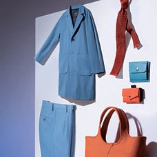 DUNHILL 〈ダンヒル〉 トレンチコート 334,800円(ポリエステル) セーター 129,600円(絹) パンツ 108,000円(絹) メンズ館4階=メンズラグジュアリー