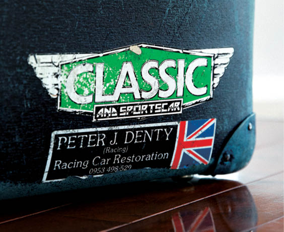 愛用のラゲッジには、自身が所属する英国のカークラブや雑誌のステッカーが貼られている。
