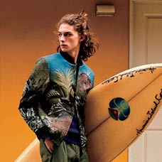 今季メンズ館に初登場したブランド。ナポリ仕立てのようなソフトな着心地やラペルステッチを盛り込むなど、つくりにこだわっている。アズーロ・エ・マローネ(青と茶)を 意識した配色で着こなしたい。