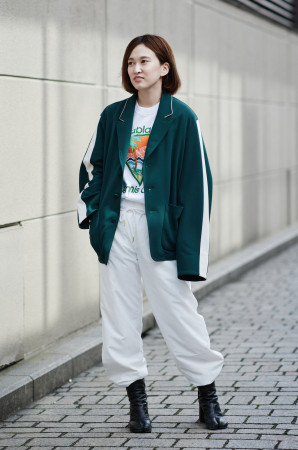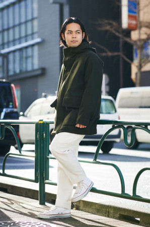 Q.好きなファッションは? 清潔感のあるコンフォートスタイル。プライベートではフィット感のある服があまり好きでないのでゆとりがあるシルエットの服が好きです。